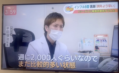 夕方の情報番組タダイマ!でインフルエンザについて取材を受けた内容が放映されました。