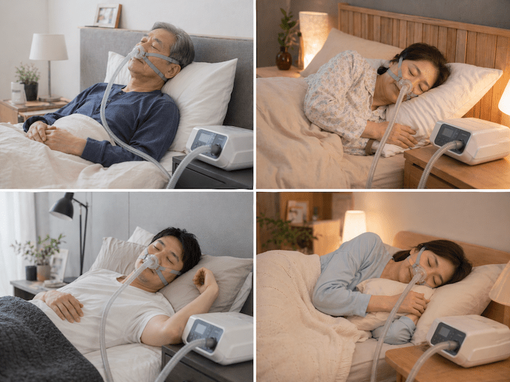 CPAP(Continuous Positive Airway Pressure:持続陽圧呼吸療法)は、睡眠時無呼吸症候群の中等度〜重度に対する最も標準的な治療法です。就寝時にマスクを装着し、専用の機器から一定の圧力で空気を送り込むことで、気道が閉塞するのを防ぎます。